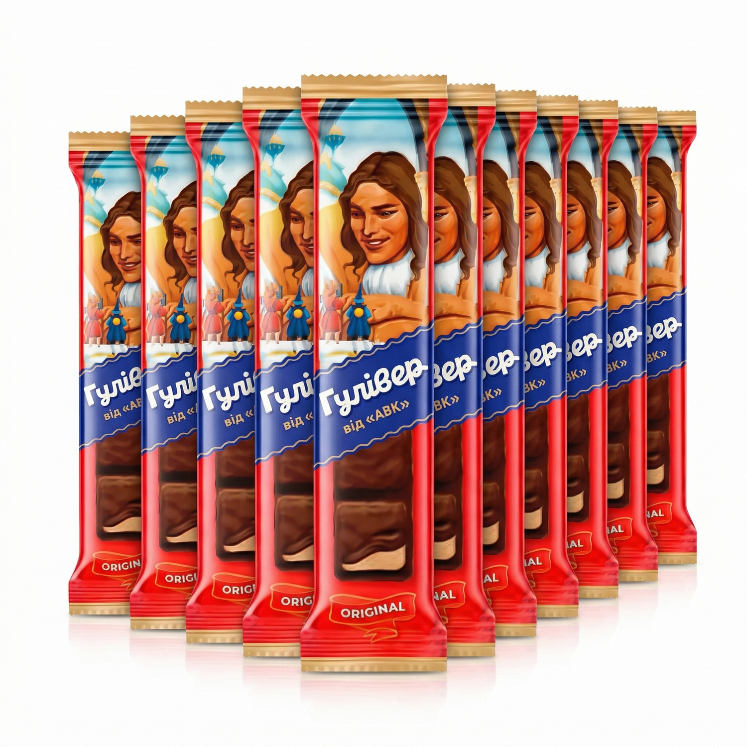 The AVK Gulliver Original Wafer Bar is designed for chocolate lovers who refuse to compromise on quality. With its signature crispy wafer layers, rich hazelnut praline filling, and a generous coat of real dark chocolate, it is ideal for vegan snackers, sweet treat enthusiasts, and anyone who appreciates a timeless confectionery classic made with honest, plant-based ingredients. This is not your average chocolate bar. The Gulliver has been a beloved staple in Ukrainian confectionery for generations — and one taste tells you exactly why. Crunchy air-baked wafers, a smooth filling of selected roasted hazelnuts, and a proper dark chocolate shell that means business. No lactose, no animal products, no fuss. Just pure, unapologetic chocolate joy in every bite. Each pack contains 10 individually wrapped 25g bars, making them perfect for sharing (or, let's be honest, keeping all to yourself).