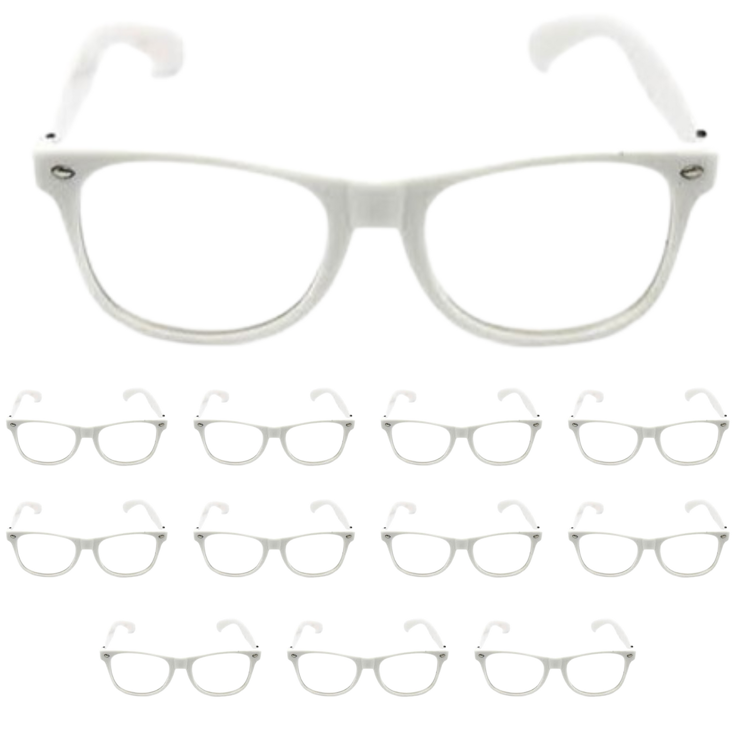 12x Wayfarer Sunglasses Glasses Party Wedding Fun Costume Dress Up - White/Clear