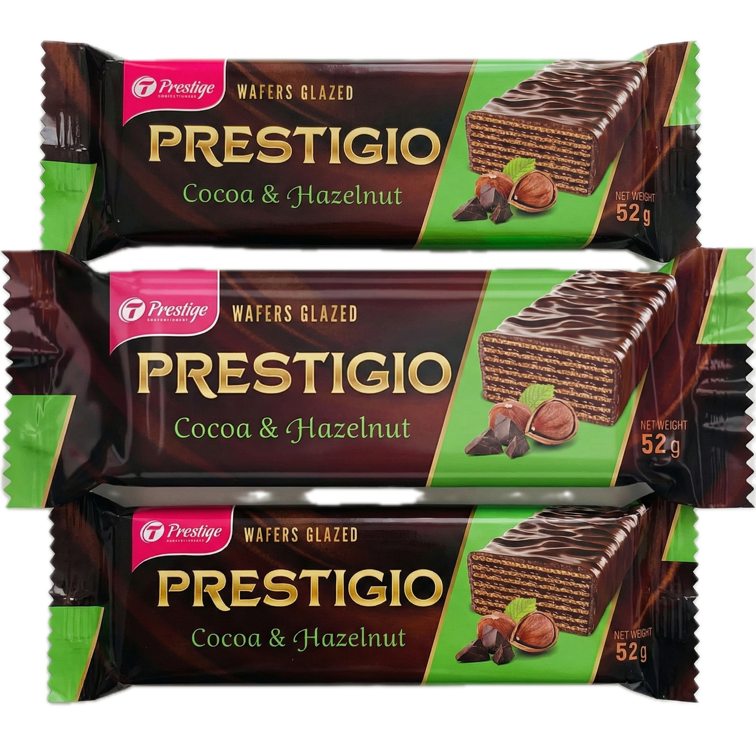 3x 52g Prestigio Glazed Chocolate Wafers in Cocoa & Hazelnut - Product of Ukraine