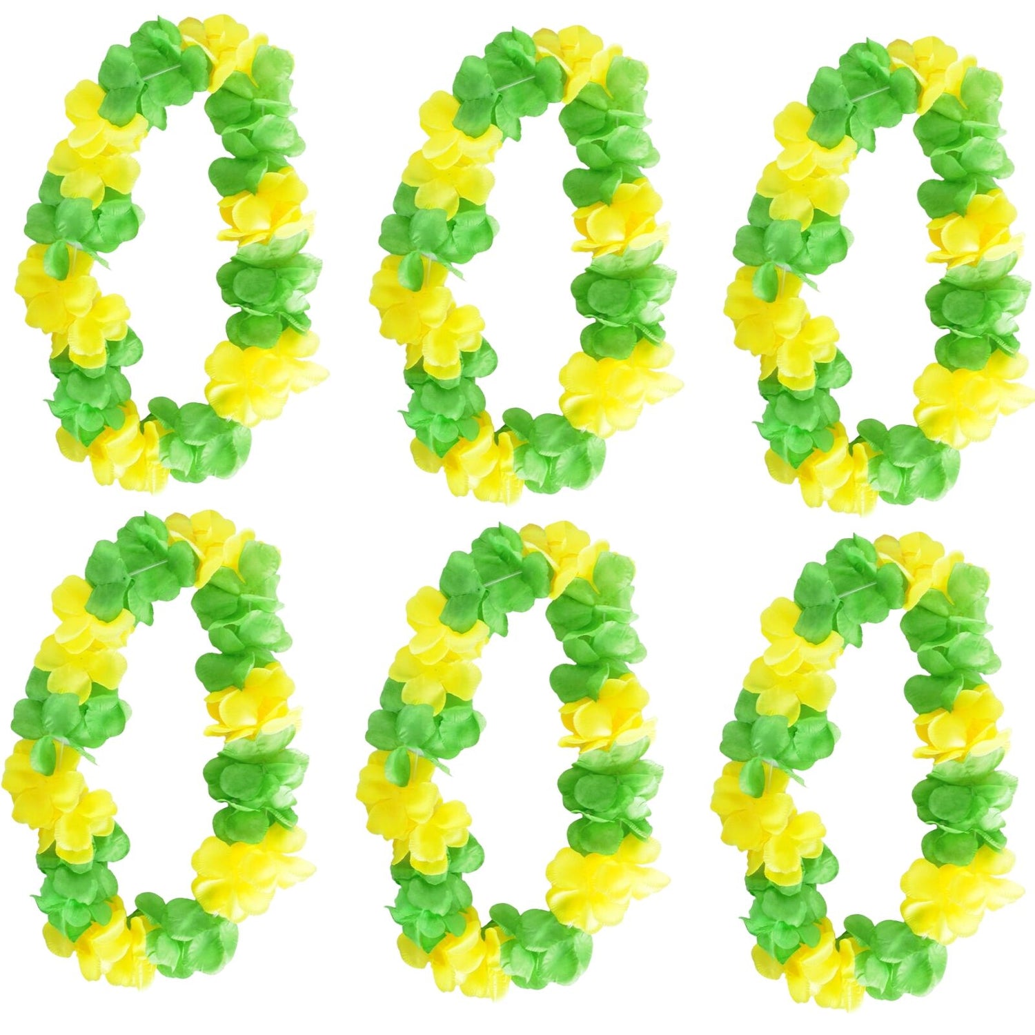 - Includes: 6x Green & Yellow Hawaiian Lei