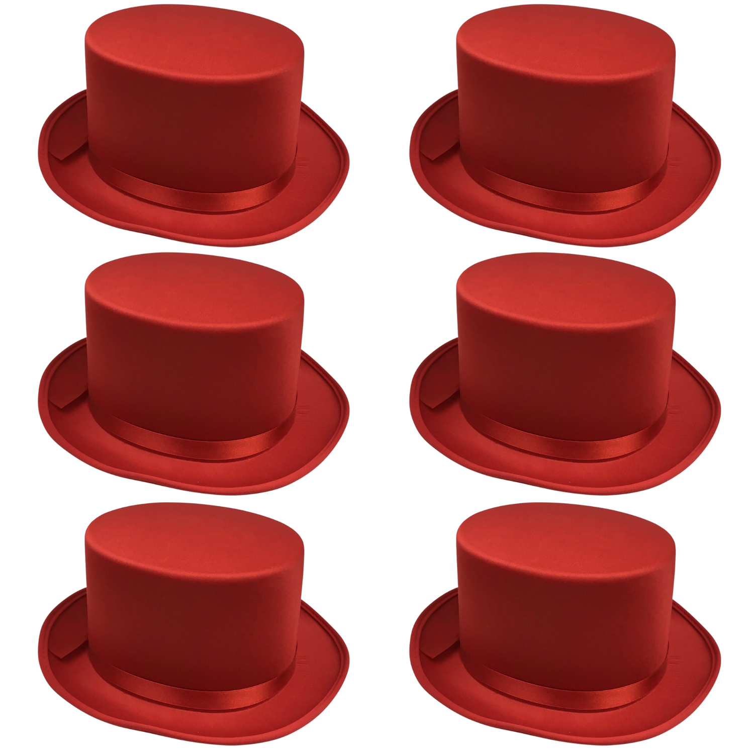 6x SATIN TOP HAT Costume Party Cap Fancy Dress Trilby Fedora One Size BULK - Red