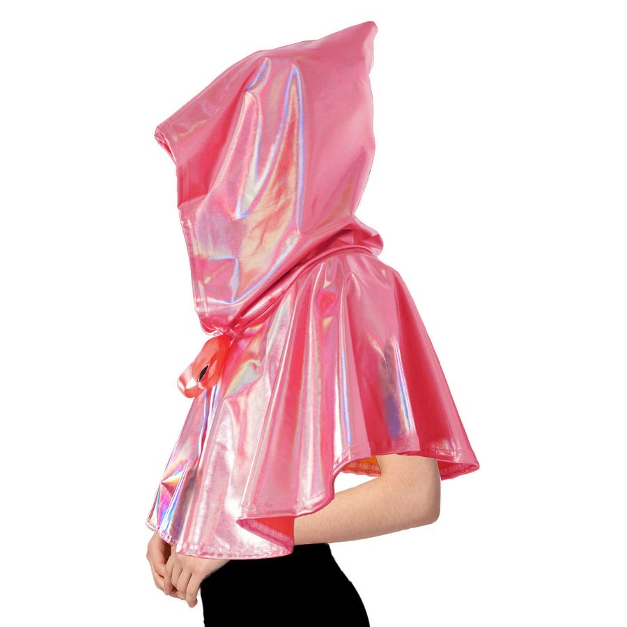Shine bright and step into the spotlight with our dazzling Adult Iridescent Metallic Mini Hooded Cape in pink! This playful, eye-catching cape is crafted from shiny iridescent fabric that reflects multiple colors as you move, making it the perfect accessory for festivals, raves, pop concerts, or any occasion where you want to stand out. The short length and pointed hood add a fun and flirty vibe, while the adjustable ribbon tie at the neck ensures a comfortable fit for various sizes.