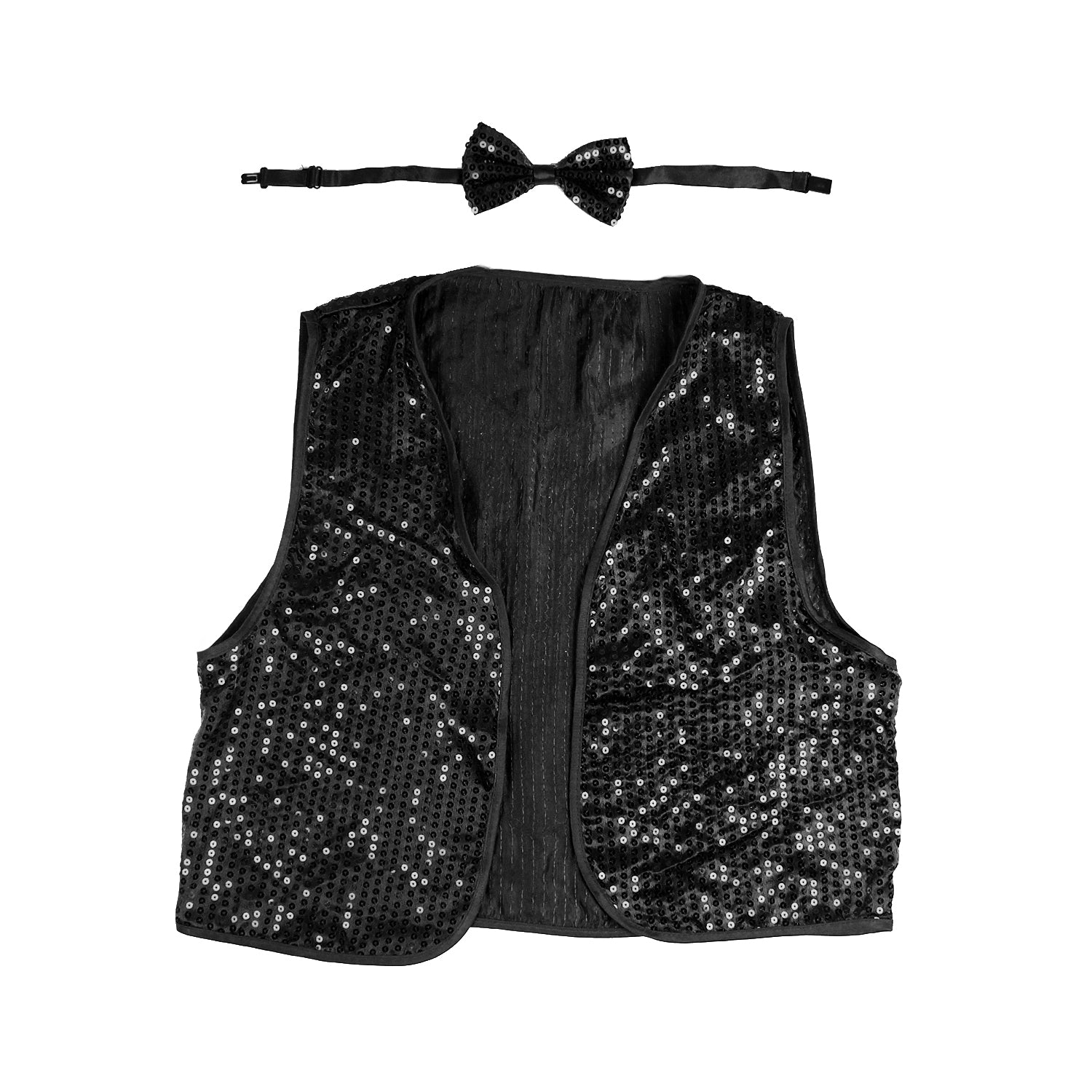 Adult Unisex SEQUIN BOW TIE & VEST Dance Costume Party Sparkle Set in Black
