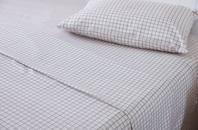 100% Cotton Percale Sheet Set - Fitted & Flat Sheets + Pillowcases - Fern Grid