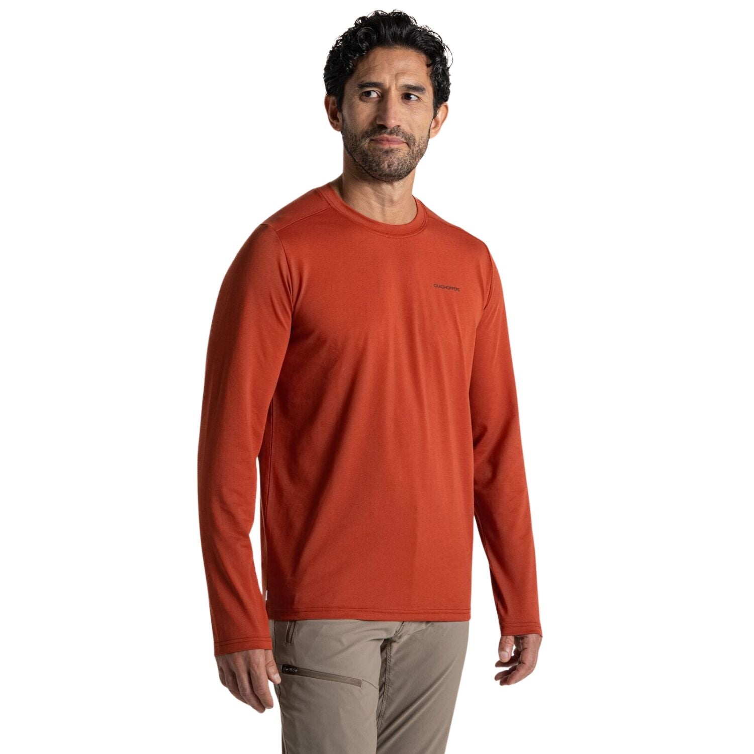 Craghoppers Mens Abel Insect Repellent Quick Dry Long Sleeve T-Shirt in Red Beach