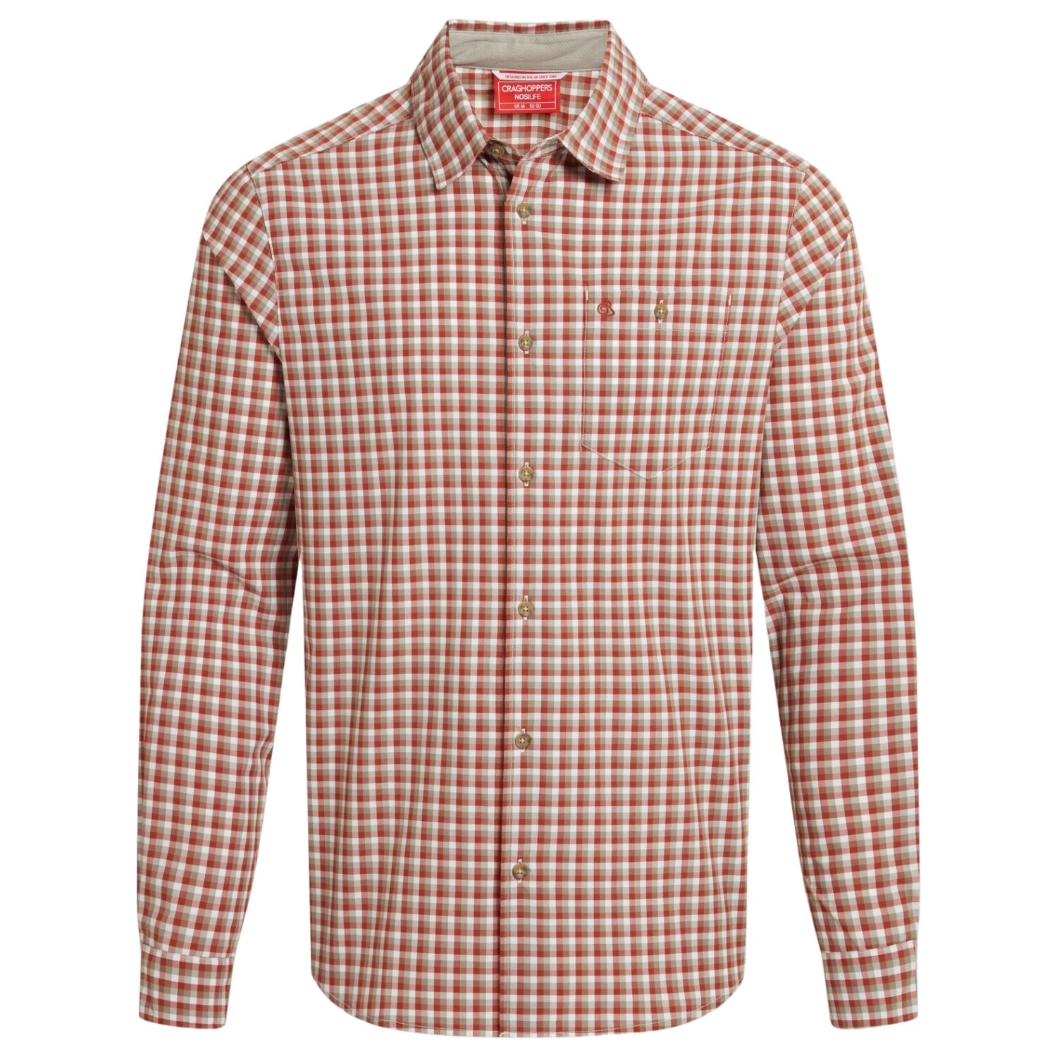 Craghoppers Mens Nuoro Insect Repellent Quick Dry Long Sleeve Shirt in Red Beach Check