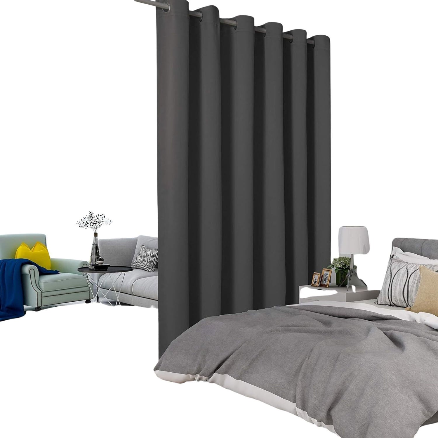 Dark Grey Room Divider Curtains - Total Privacy Wall Room Divider Screens Sound Proof Wide Blackout Curtain