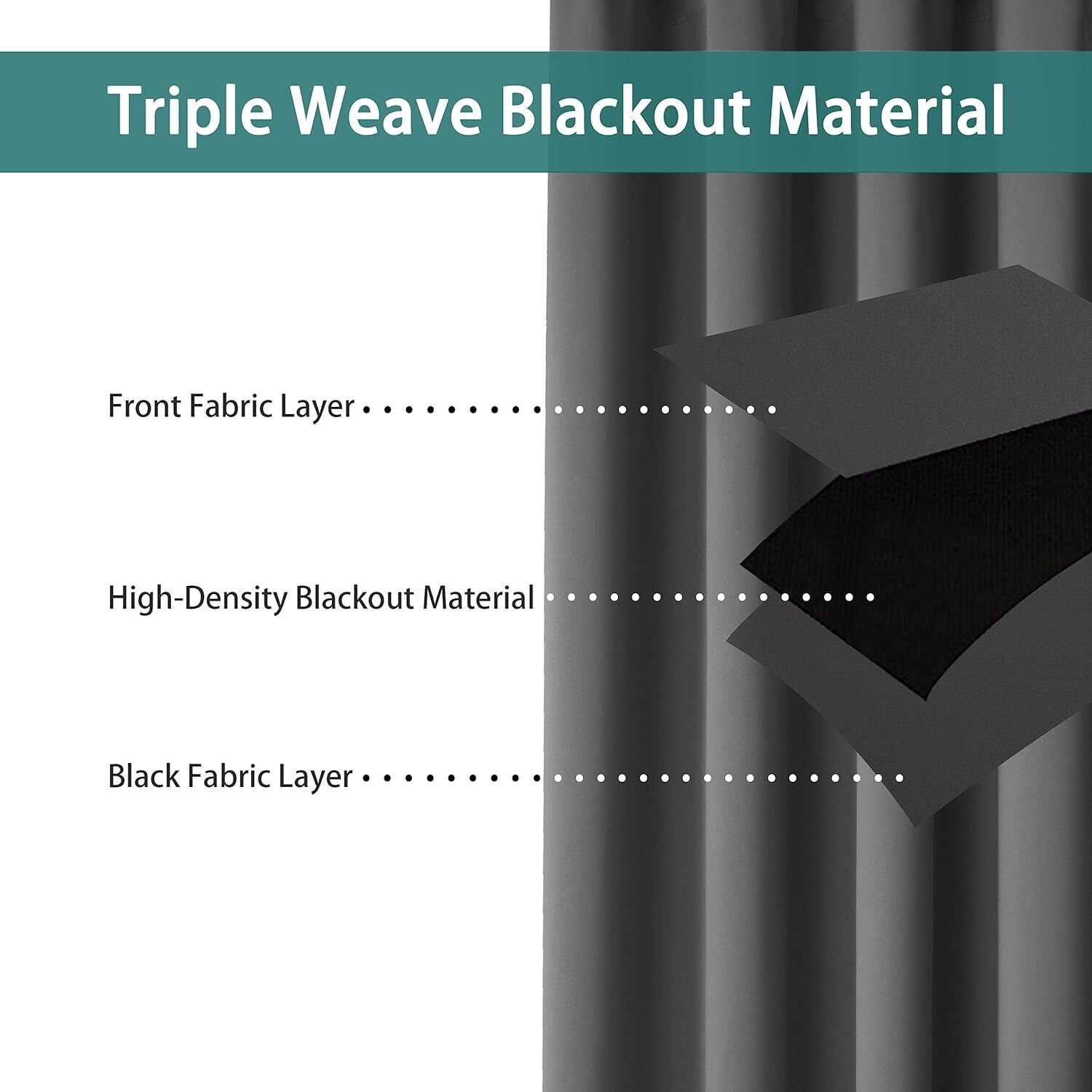 - PREMIUM BLACKOUT MATERIAL: Our room darkening curtain is made of 100% polyester fabric and have the same color with the front and back. Crafted in a certified STANDARD 100 by OEKO‑TEX factory from a durable soft and thick triple weave blackout fabric which block out 90% above sunlight and UV rays. Darker colors work better.