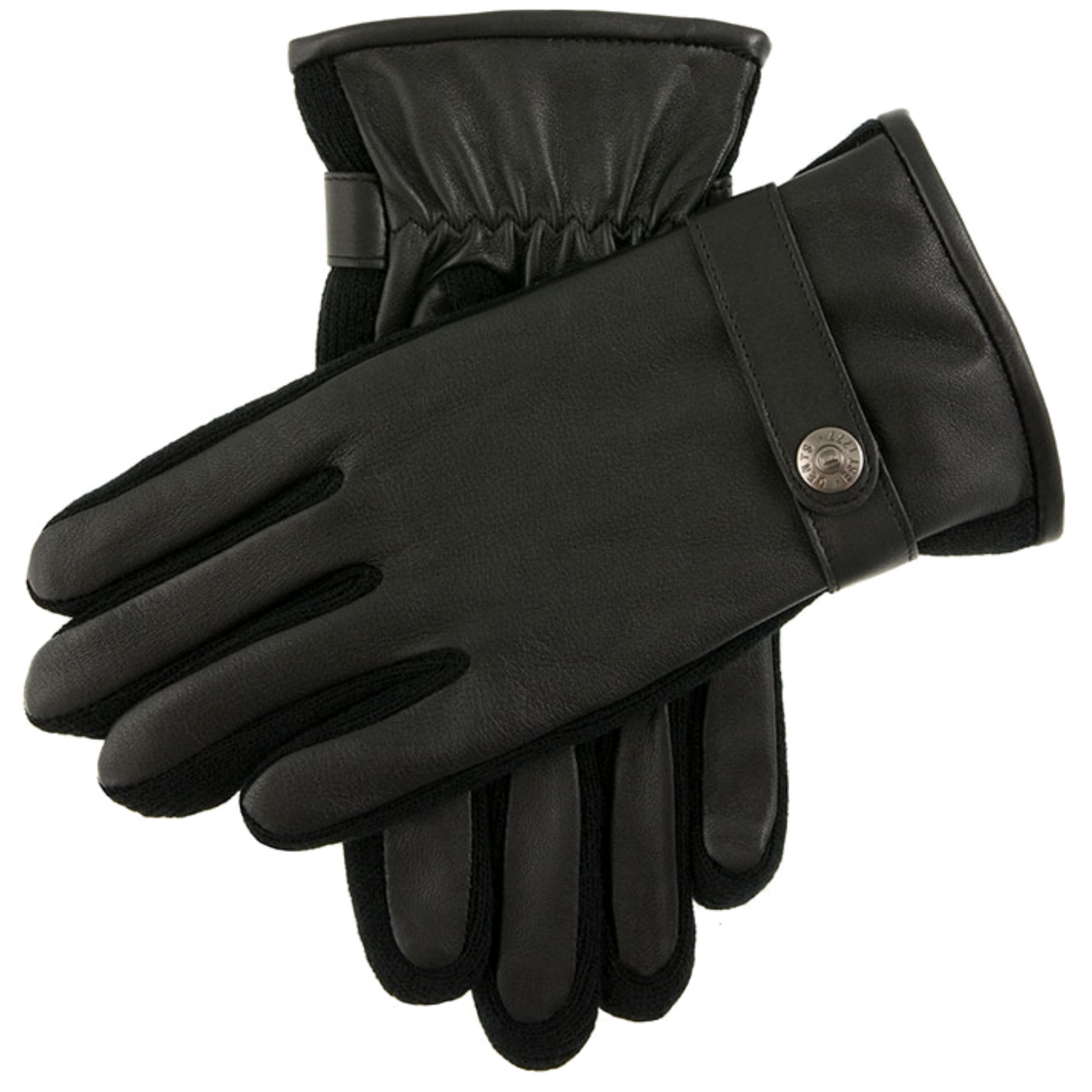 Dents Harpford Men's Leather Gloves with Knitted Sidewalls - Black - M