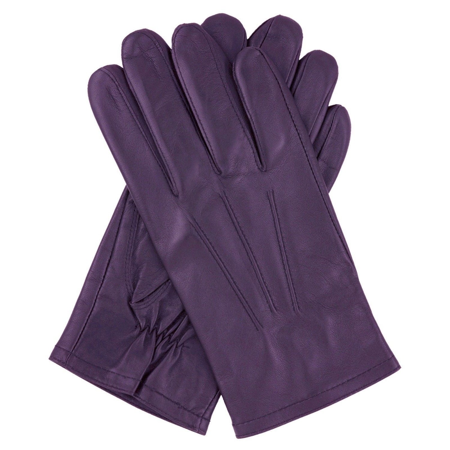 Dents Mens Genuine Full Grain Leather Gloves 3 Point Stitch Fleece Lined Warm Winter - Purple