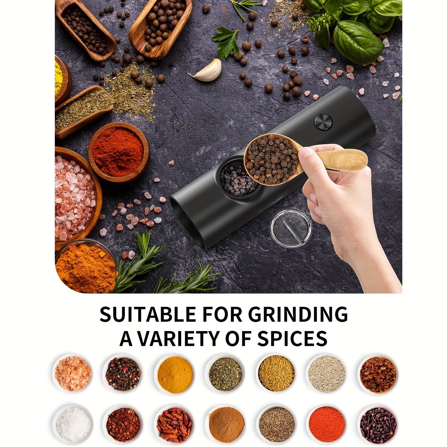 Electric Salt & Pepper Grinder Set – Adjustable Coarseness, LED Light & One-Touch Control (Black)