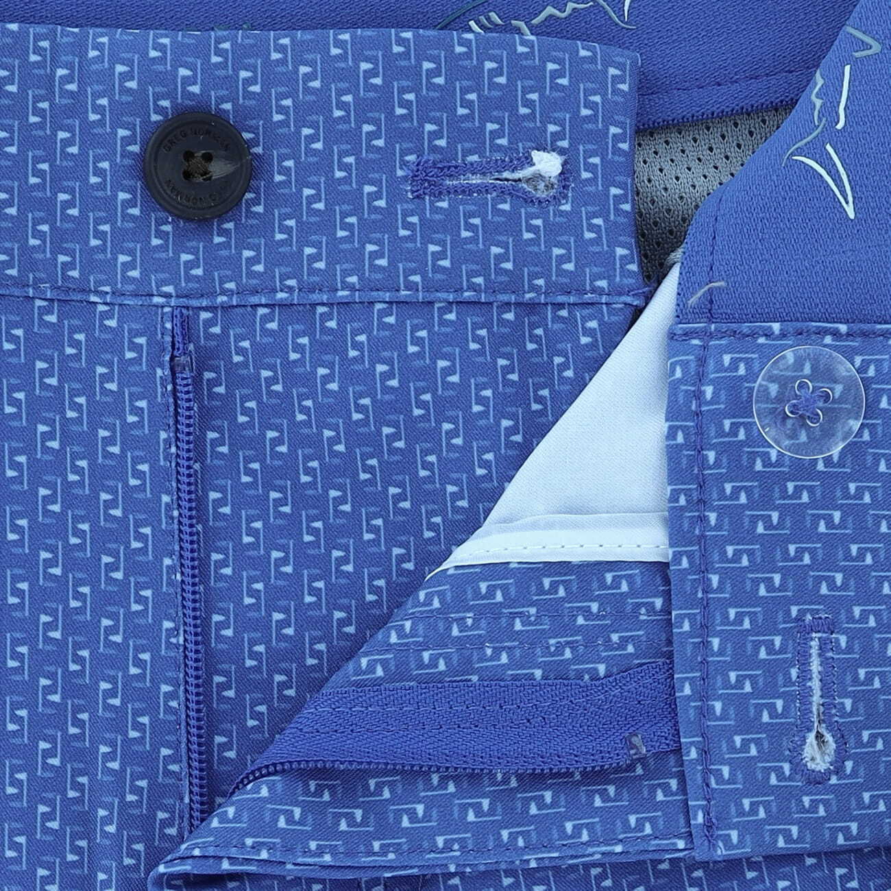 The Greg Norman ML75 Microlux Hybrid Flag Print short features a 9.5" inseam, quick-dry water-resistant finish, 4-way stretch, stretch waistband, mesh pocketing, and a stylish Pinflag foulard print to keep you comfortable and stylish on and off the golf course!