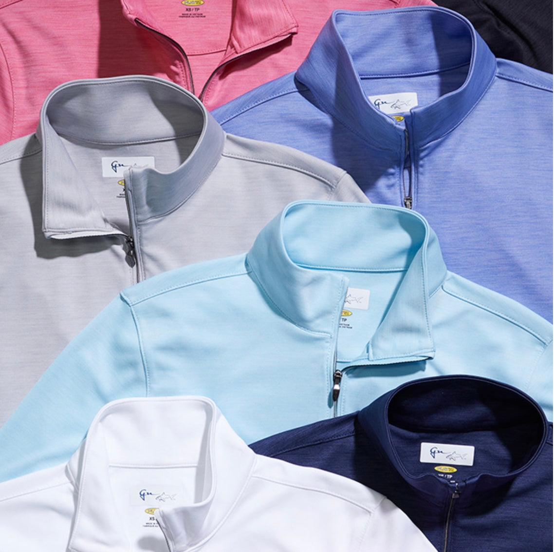 The Utility 1/2-Zip Mock is an essential layering piece from GN Women's crafted from 100% Polyester Interlock soft peached heather fabric, featuring a luxurious hand feel and performance stretch, with UPF 50+ sun protection. Design details include a mock neck and blue-grey Shark logo on the back collar.