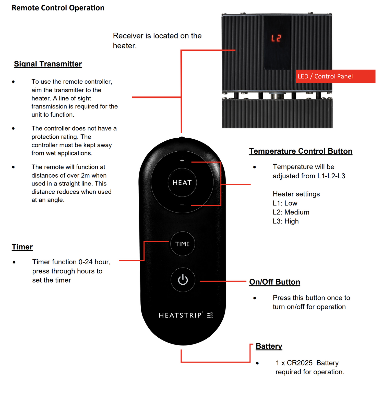 Heatstrip Radiant Slimline Electric Indoor/Outdoor Patio Alfresco Heater Black 2200W w/Remote