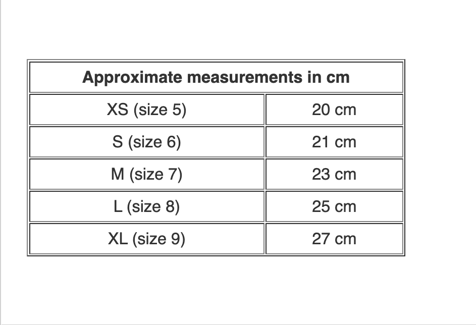 XS (size 5) | 20 cm | |