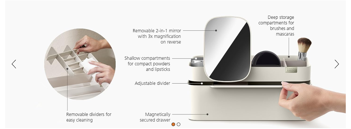 - Shallow compartments for small items such as lip balms, blushers and eye-shadows