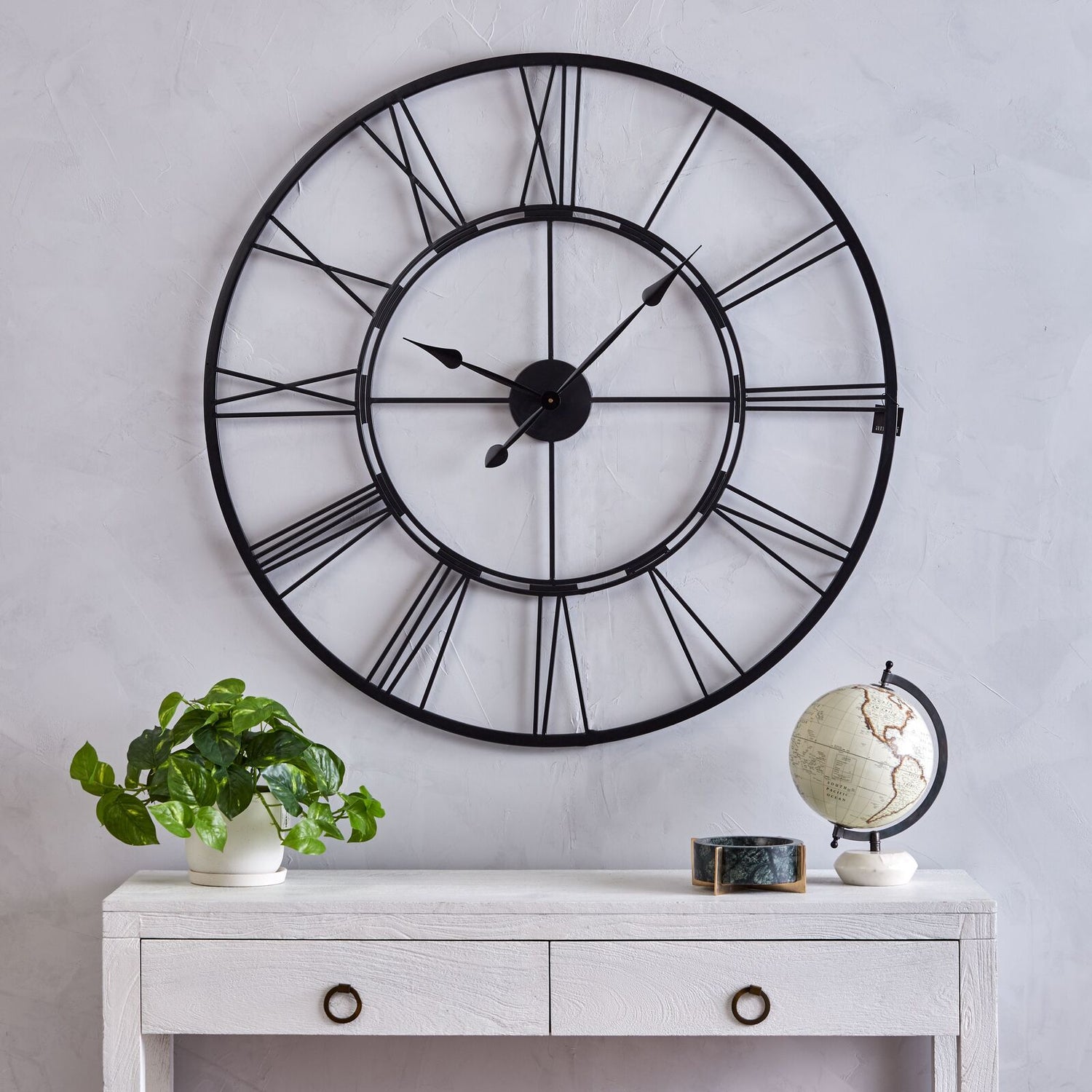 If your walls are crying out for something bold and beautiful, this jumbo metal frame clock is the perfect finishing touch. With its open-back design and striking black matte frame, it blends effortlessly into almost any style — from modern industrial to warm, cosy interiors. The oversized roman numerals give it real presence, making it an eye-catching hero piece for living rooms, hallways and entryways.
