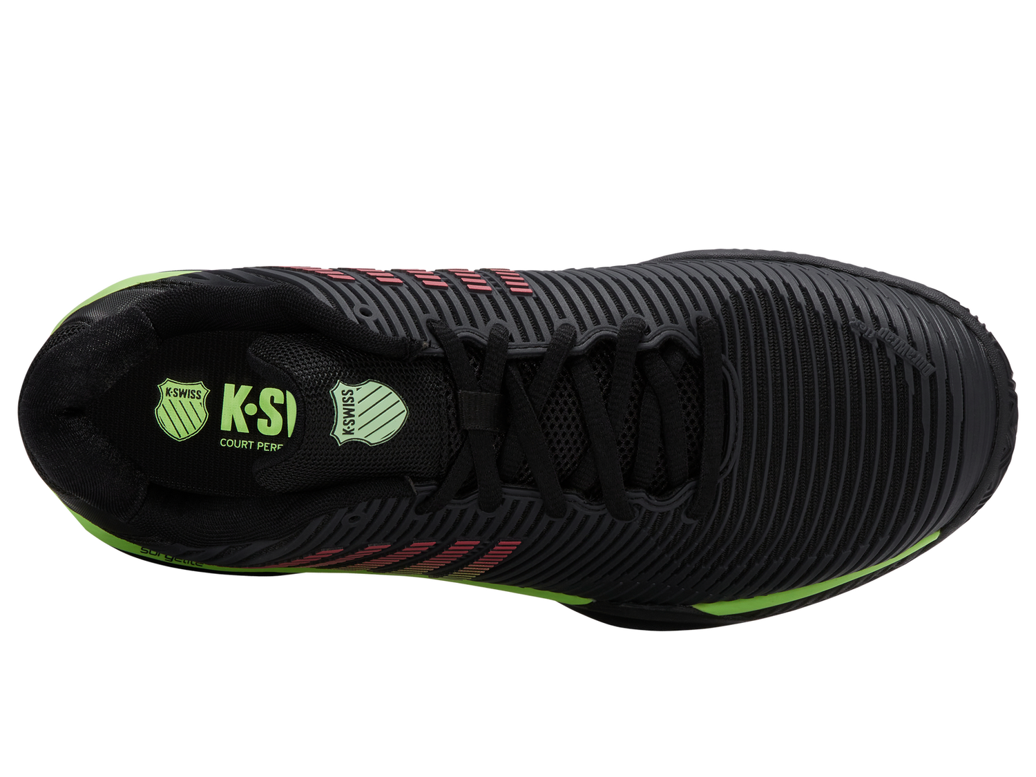 K-Swiss Mens Hypercourt Express 2 Clay Court Tennis Shoes - Black/Green - US 7 is backordered and will ship as soon as it is back in stock.