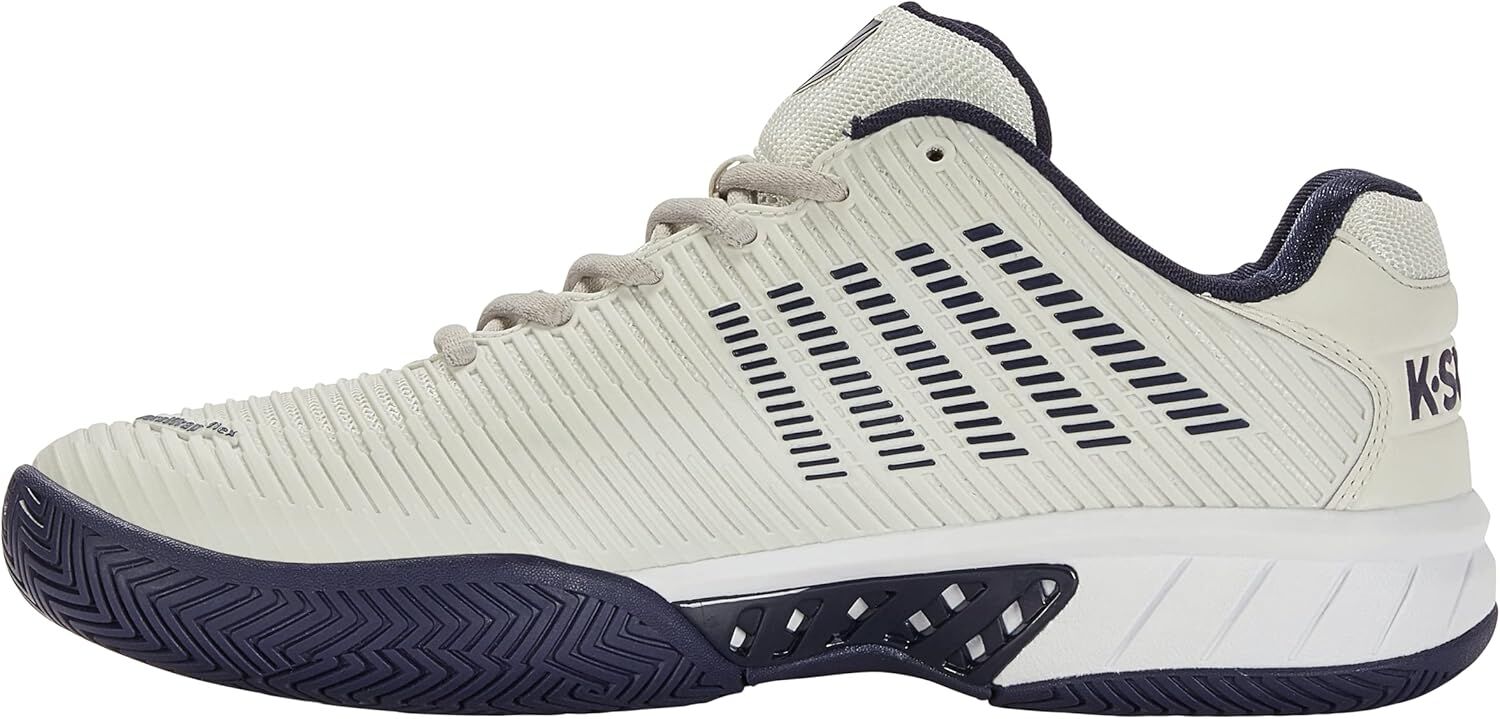 K-Swiss's best-selling shoe, the Hypercourt Express 2, is light, comfortable, breathable, and has a generous fit, making it the ideal choice for a variety of playing styles and levels. Durawrap Flex, gives the shoe support with no break-in period, while Surgelite midsole technology provides all-day comfort. The shoe also features a deep grooved herringbone outsole for exceptional traction on clay court surfaces.