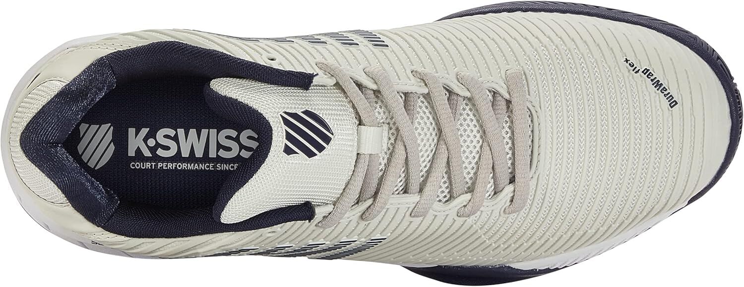 K-Swiss Mens Hypercourt Express 2 Tennis Shoes Wide (2E) in Vaporous Gray/White/Peacoat - US 7 is backordered and will ship as soon as it is back in stock.