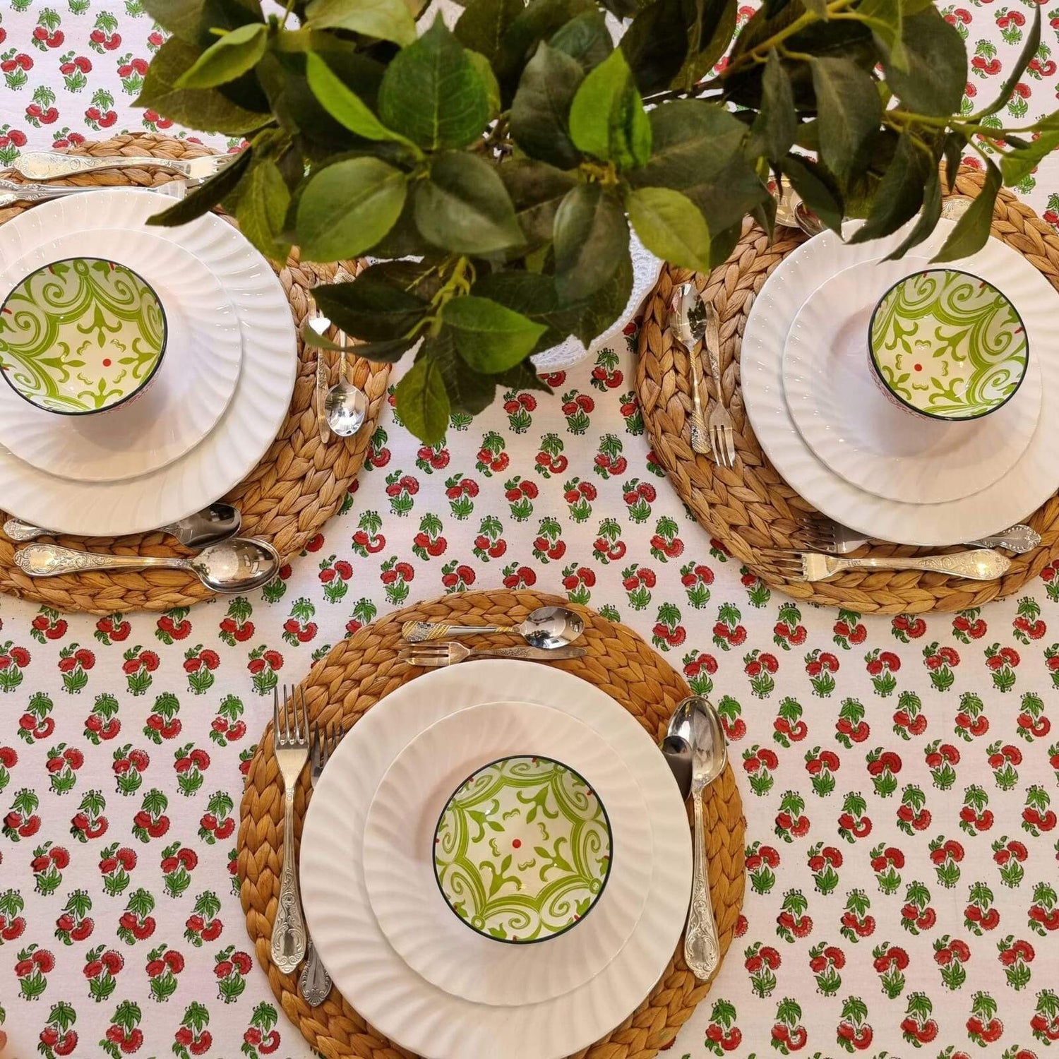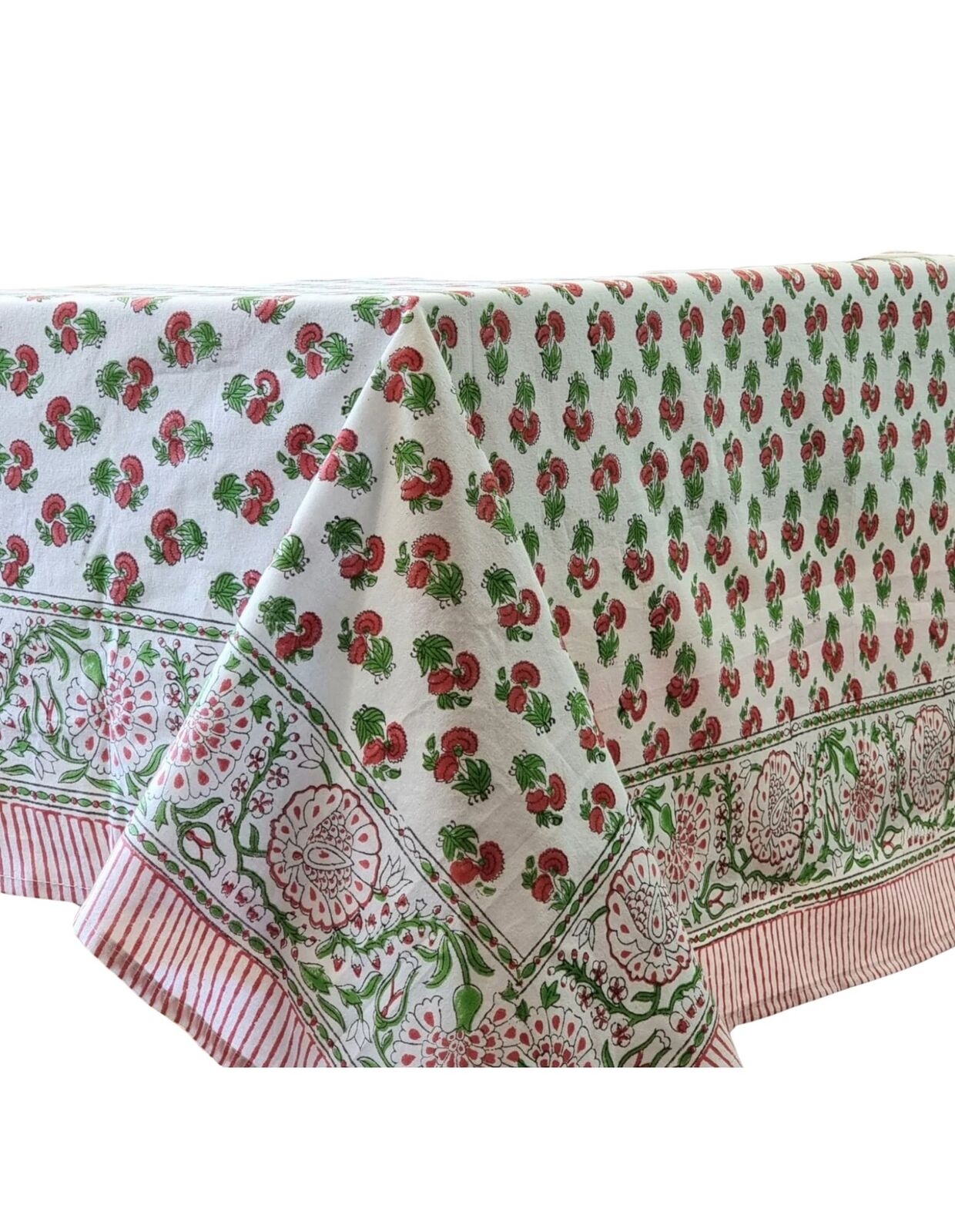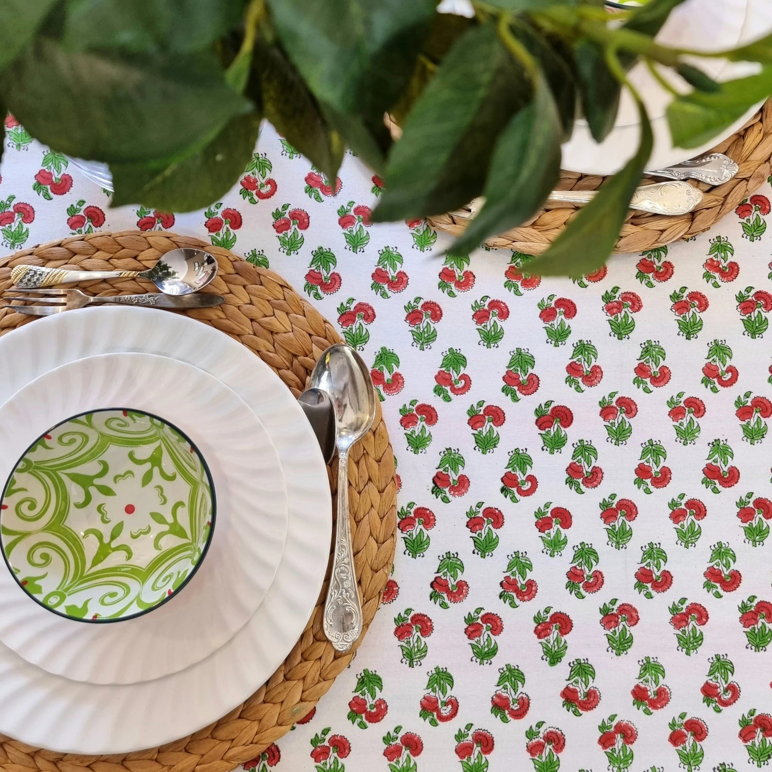 Our hand-block-printed tablecloths are artistically created by skillful artisans in Rajasthan. The tablecloth is suitable for a 6-seater dining table.