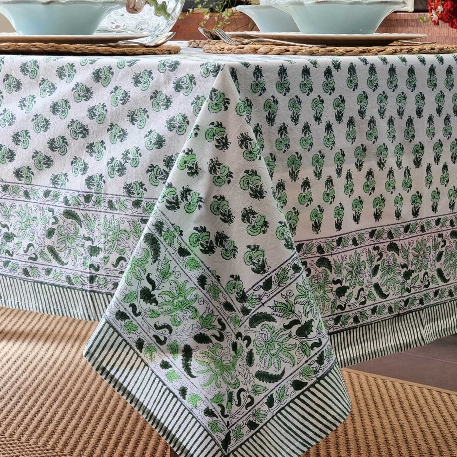 Our hand-block-printed tablecloths are artistically created by skillful artisans in Rajasthan. Tablecloth is suitable for a 6-seater dining table.