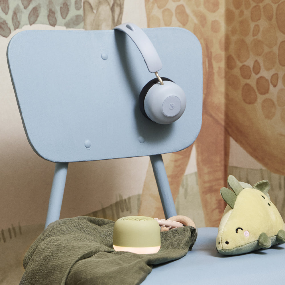 Kreafunk Kids Buzz Junior Bluetooth Headphones - Cloudy Blue - Buzz Junior Safe Audio Headphones.Where Fun Meets Function Safely.Delightfully designed with playful bear ears, Buzz Junior headphones are sure to be loved by little listeners everywhere. But there's more to these than their charming looks they're thoughtfully crafted to provide young children with a safe, comfortable, and joyful audio experience.The ultra-soft ear cushions feel like fluffy marshmallows, offering a snug and cozy fit, perfect for long listening sessions at home, during car rides, or on adventurous family getaways.Built with your child's well-being in mind, these headphones feature a volume cap of 79dB to protect developing ears without compromising on sound quality. Crafted from 100% recycled GRS-certified plastic and recycled vegan leather, they reflect our commitment to sustainability because happy kids deserve a healthy planet.