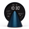 Lexon Conic Radio Alarm Clock With Fm & Built-In Bluetooth Speaker - Blue - This versatile radio alarm clock features an FM radio and a built-in Bluetooth speaker, allowing you to wake up to your favourite FM station, soothing melodies, or natural sounds. It boasts a large LCD display with adjustable brightness for optimal visibility and includes an indoor temperature and relative humidity display for added convenience. The touch controls provide easy access to Bluetooth and FM radio modes, as well as device settings. Rechargeable and powered by a USB-C cable (included), this clock is crafted from durable aluminium and ABS materials. It is suitable for branding through laser or pad printing.