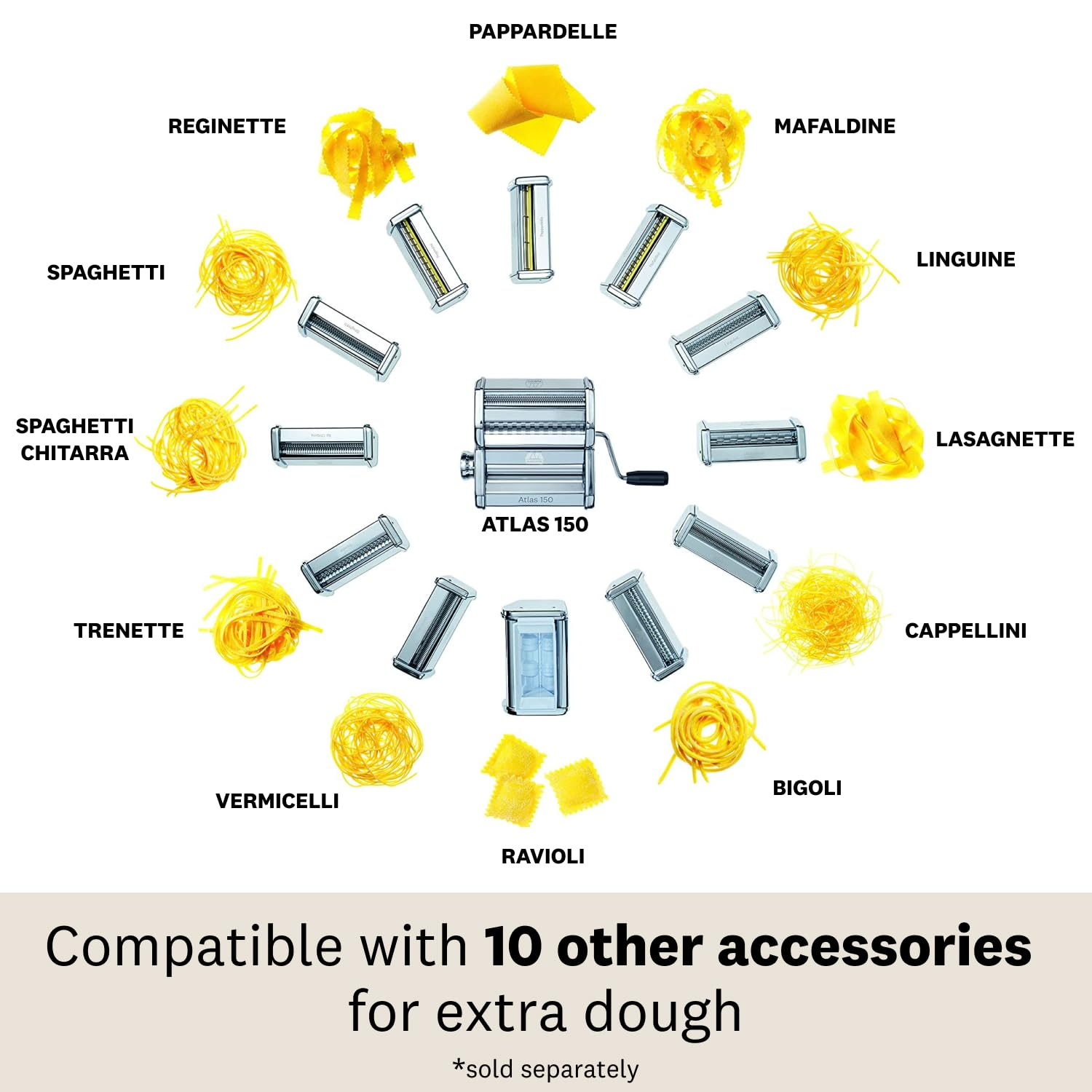 - Expandable options: Compatible with 10 additional accessories (sold separately) for even more pasta shapes.