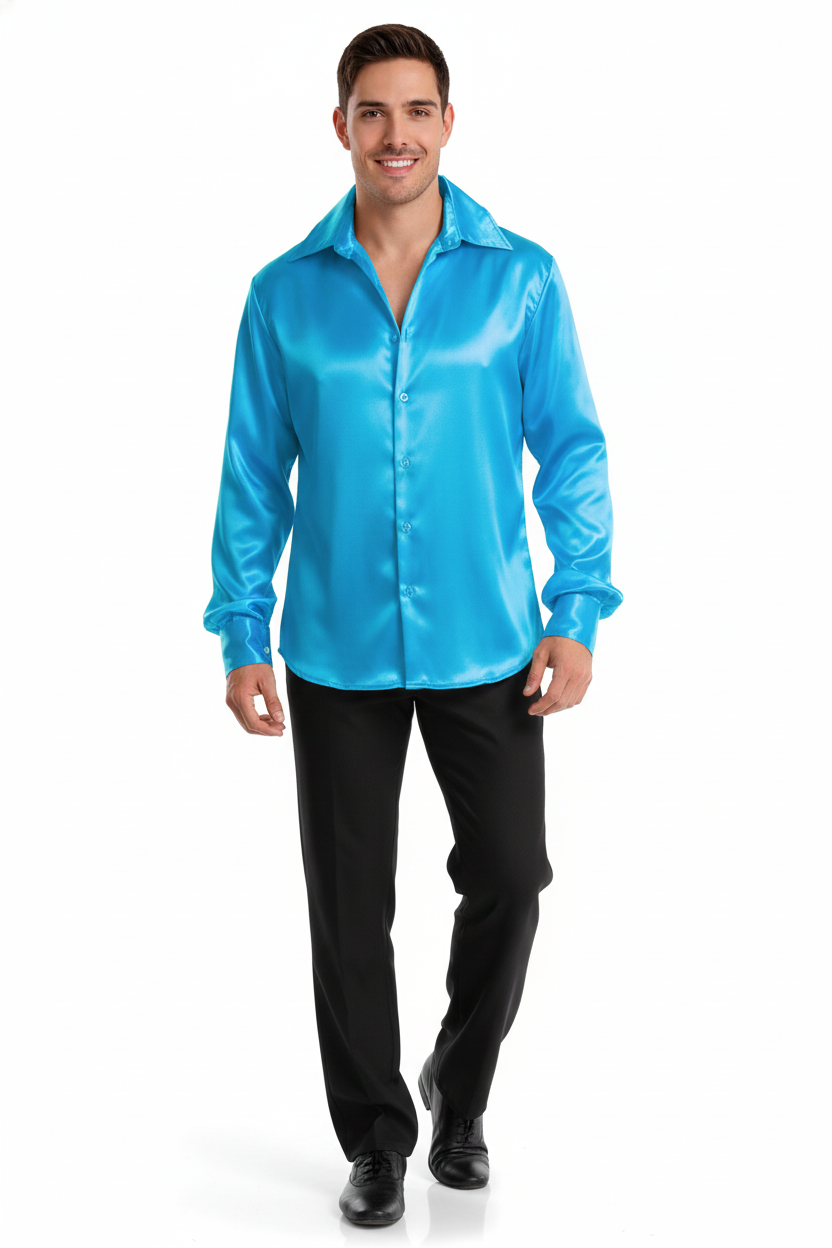 Mens 70s Deluxe Disco Shirt Costume Dance Groovy Dancer Long Sleeve - Blue is backordered and will ship as soon as it is back in stock.