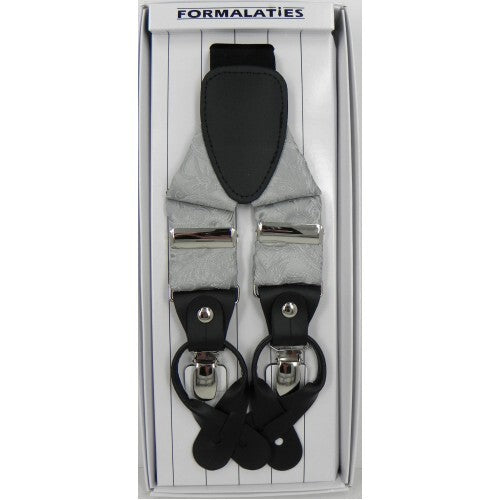 Mens Paisley Tapestry Premium Convertible Suspenders Braces Y Back - Platinum