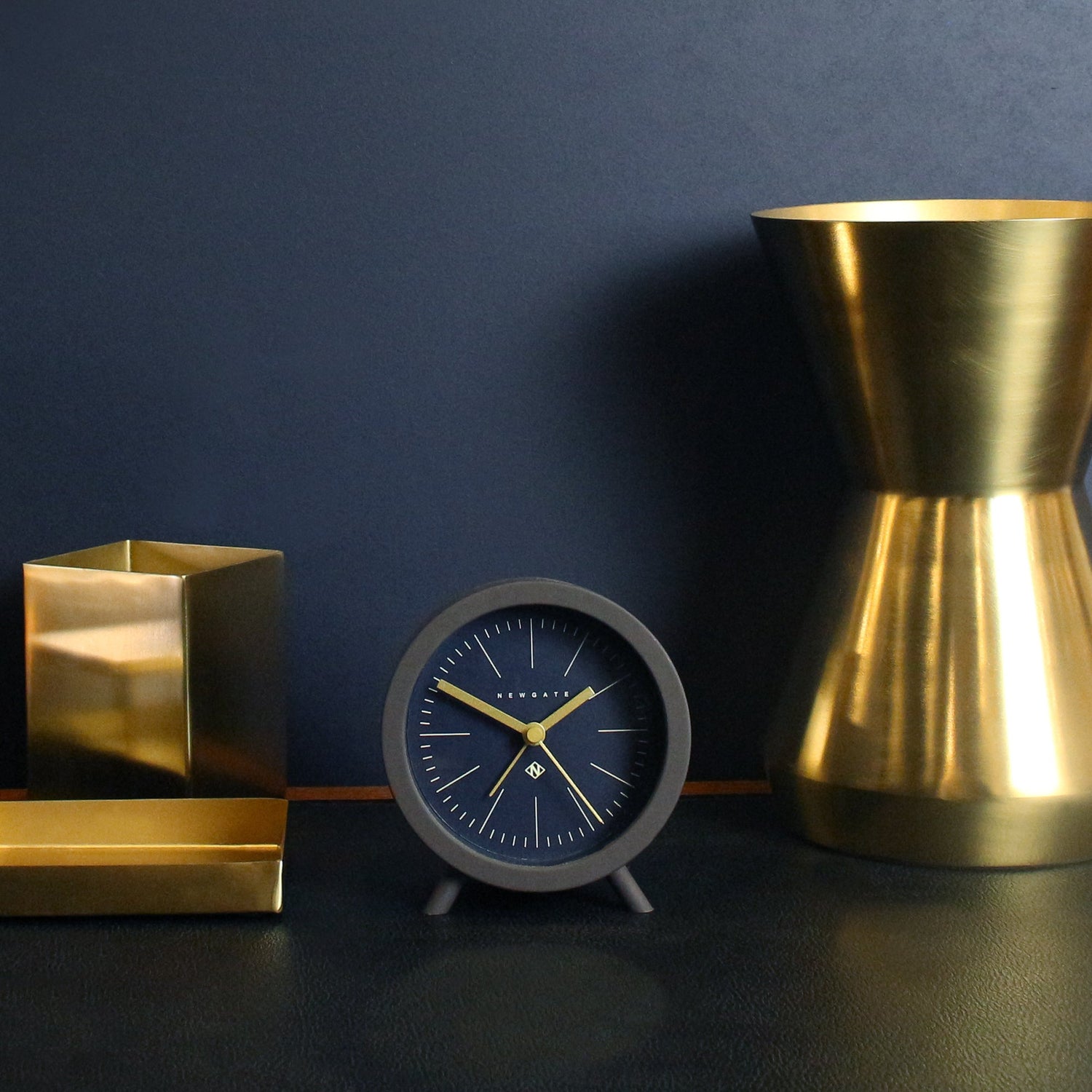 Newgate Fred Alarm Chocolate Black - Reverse Dial Mid-Century Modern Alarm Clock | Chocolate Black with Petrol Blue Dial