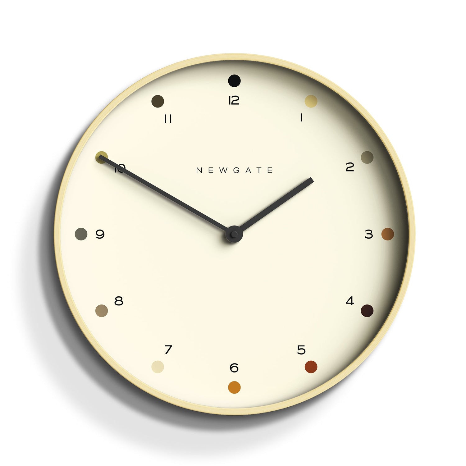 Newgate Mr Clarke Clock Pale Wood Dot Dial A large light plywood wall clock with a modern shaded dot dial.
