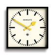 Newgate Number Five Wall Clock Black Yellow Hands A square black station wall clock with a bold marker dial, colourful yellow hands and a minimalist square case.