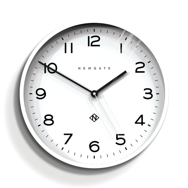 Newgate Number Three Echo Clock Silicone White A modern white wall clock with a minimalist graphic dial and a contemporary straight-cut case.