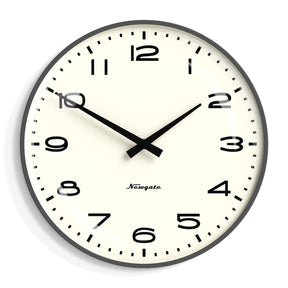 Newgate Radio City Wall Clock Matte Blizzard Grey A retro-style wall clock with a matt 'blizzard' grey case and black arabic dial.