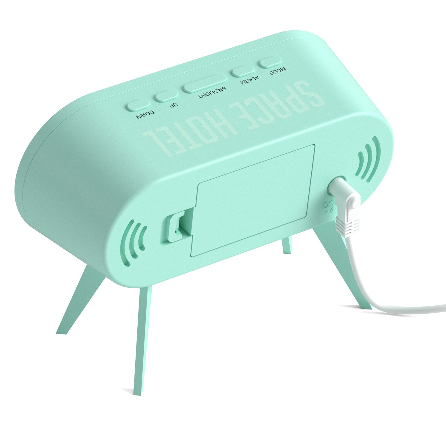 Newgate Space Hotel Cyborg Led Alarm Clock Blue This futuristic digital alarm clock is inspired by space exploration and the design of the lunar landing craft.