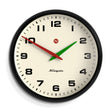 Newgate Superstore Wall Clock Alpha Dial Black A large retro-style wall clock with a matt black case and contrasting red and green hands.