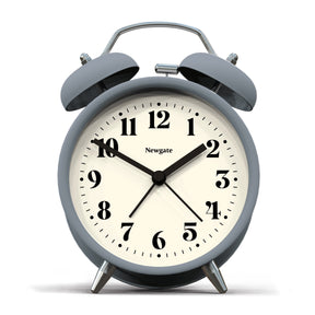 The Theatre Alarm Clock with a Matt 'French' Navy finish, contemporary graphic dial and a moving hammer and twin-bell alarm.