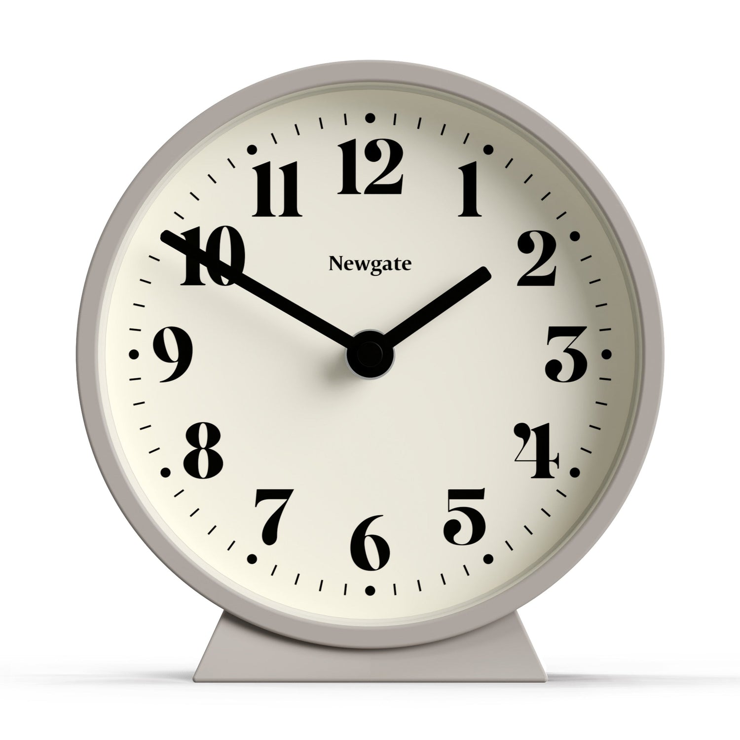 The Theatre Mantel Clock in Stone is a contemporary mantel or desk clock with a minimalist dial.