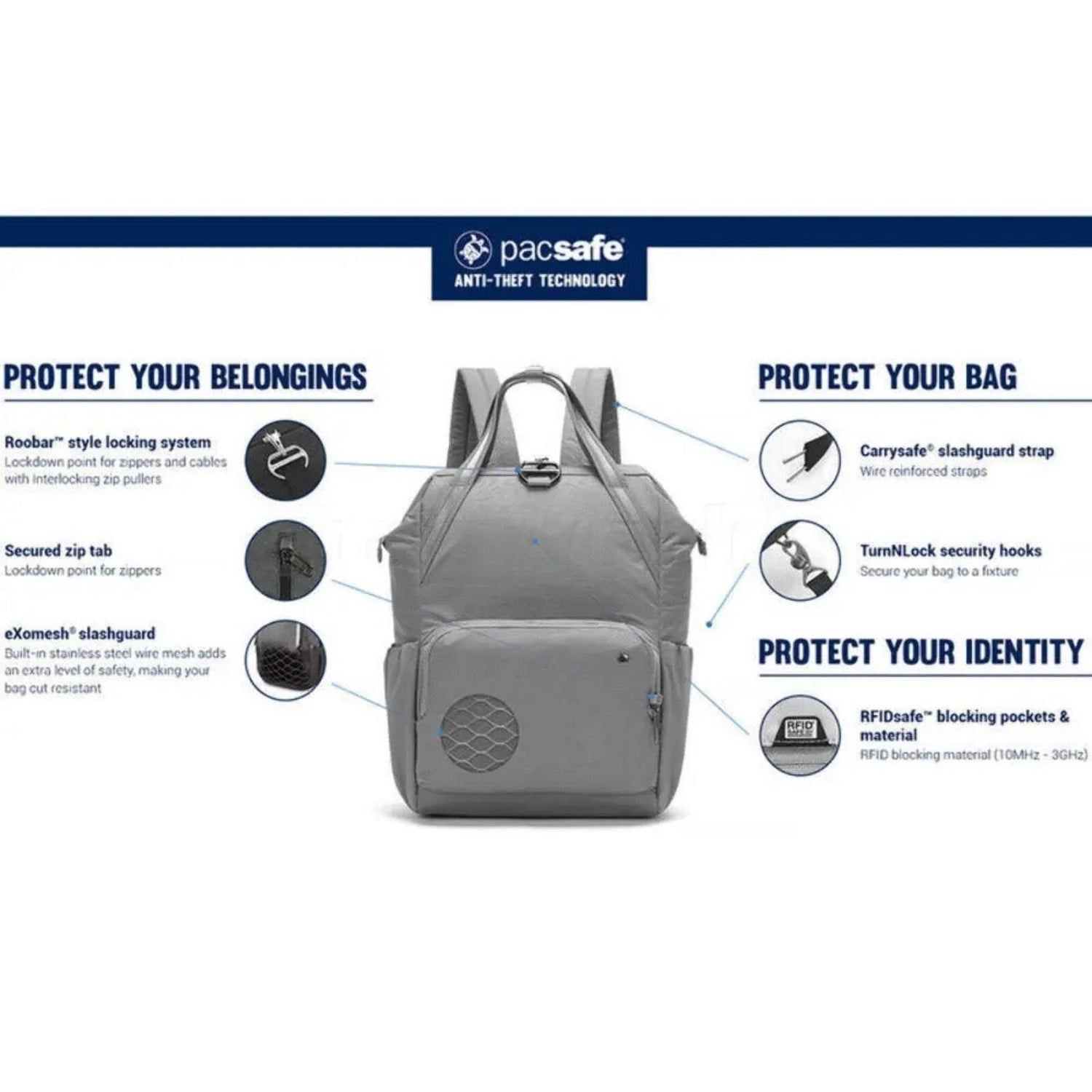 Pacsafe Citysafe CX Anti-Theft 13" Laptop Backpack Bag Econyl Gravity Gray