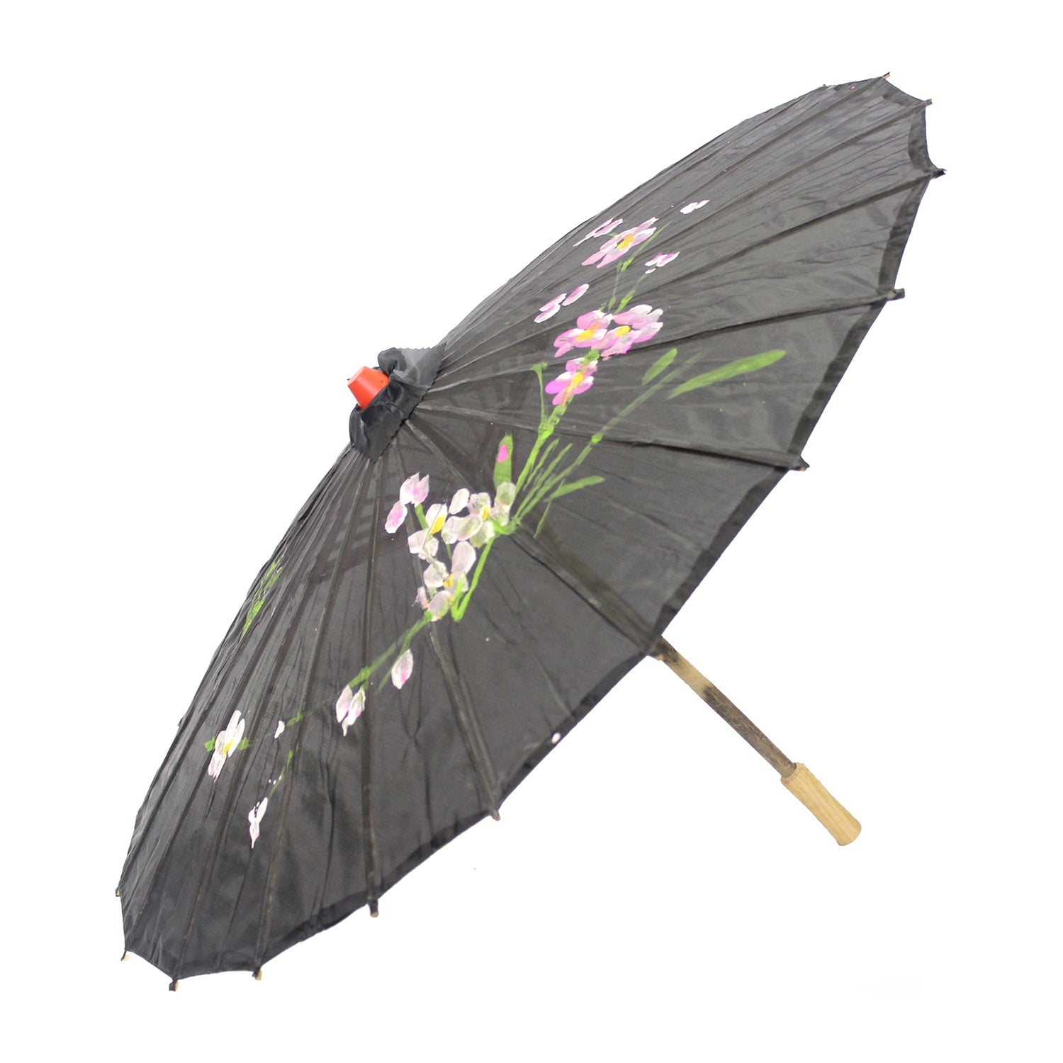 PARASOL UMBRELLA Chinese Japanese Bamboo Flower Pattern Fabric 80cm Diameter - Black is backordered and will ship as soon as it is back in stock.