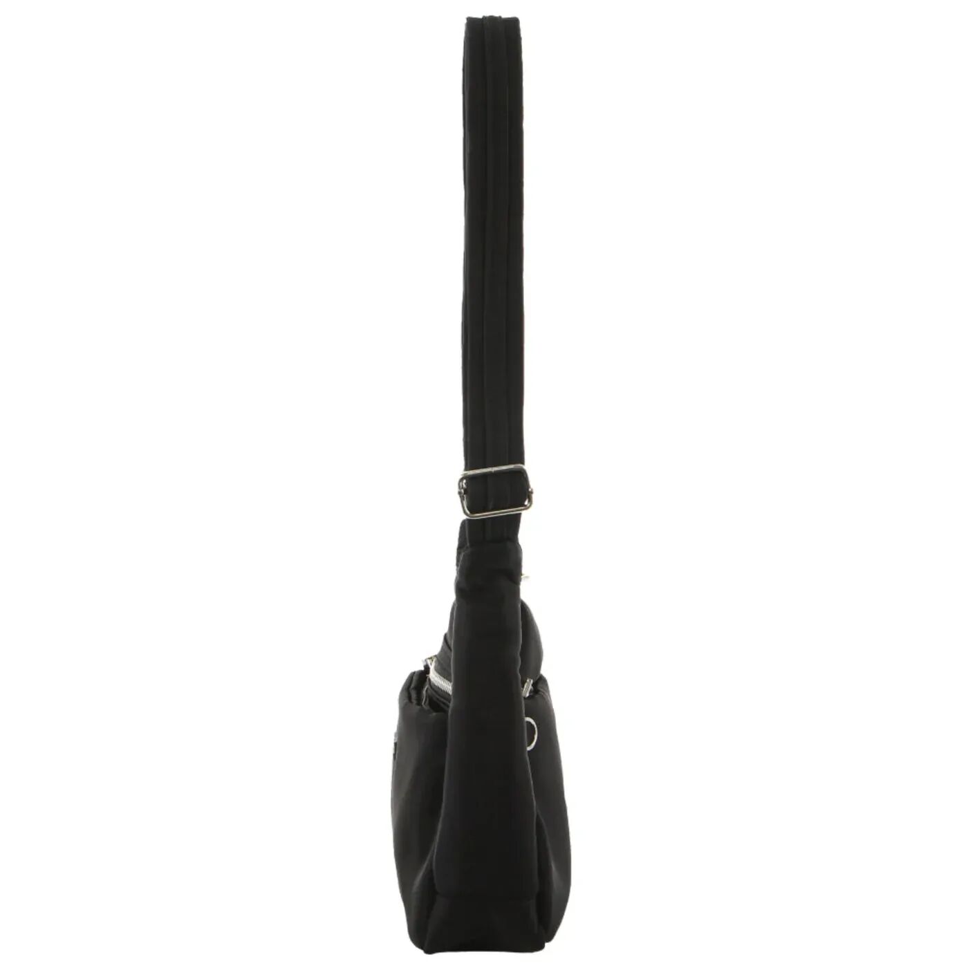 - Cable-reinforced cut-proof locking shoulder strap that is adjustable