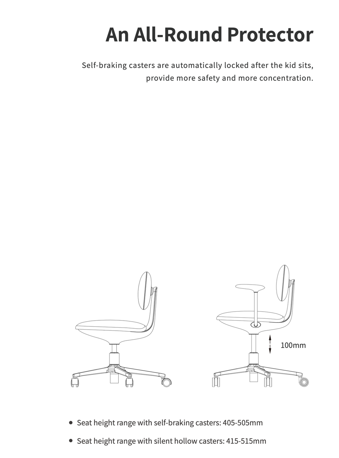 - Safety First with Auto Brake System: The optional self-braking casters lock automatically when your child sits down, ensuring stability and preventing unwanted movement, offering peace of mind for both parent and child.