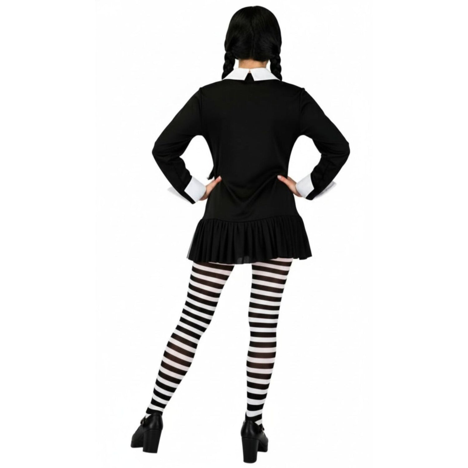 Transform yourself into the creepy and iconic character of Wednesday Addams with this Addams Family Cosplay Halloween Costume. With high-quality materials, an authentic design, and easy-to-wear features, this costume is perfect for any fan of the series or anyone who loves to stand out at costume events. Get yours today and experience the thrill of the Addams Family!