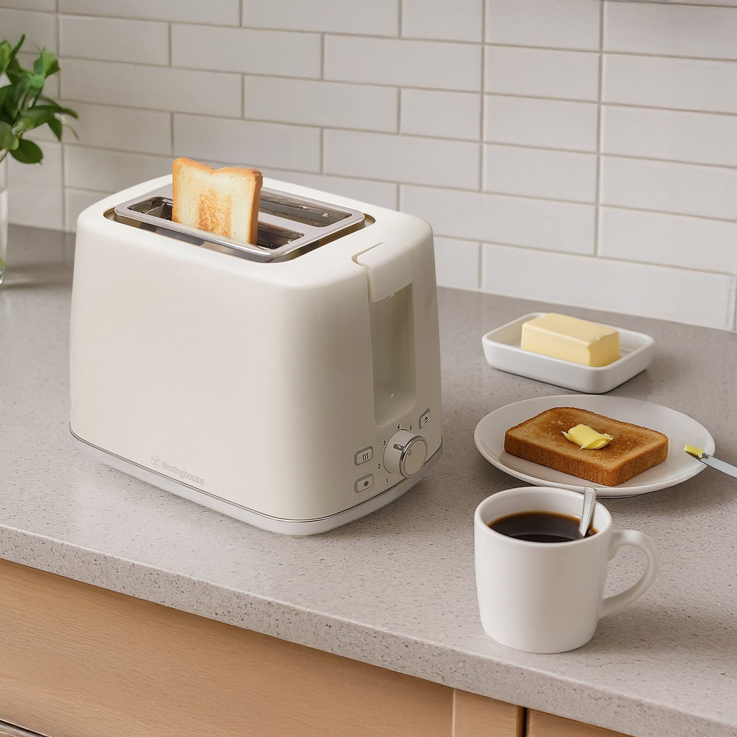 This Westinghouse toaster is designed for ease of use with extra-wide self-centering toasting slots, cable storage and variable browning control. It also comes with convenient functions including reheat, defrost, and cancel. Enjoy perfectly toasted toast every time.