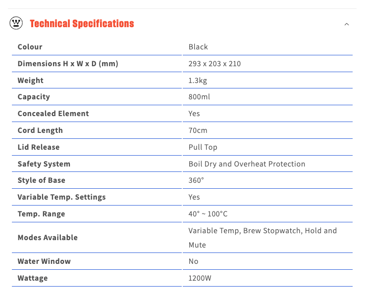 Brew like a barista in your own kitchen with the Westinghouse Gooseneck Kettle – a sleek, precision tool designed for tea lovers and coffee aficionados who like things just right. Whether you're perfecting a pour-over or steeping your favourite green, this stylish kettle brings pinpoint control and minimalist design together in one impressive little unit.