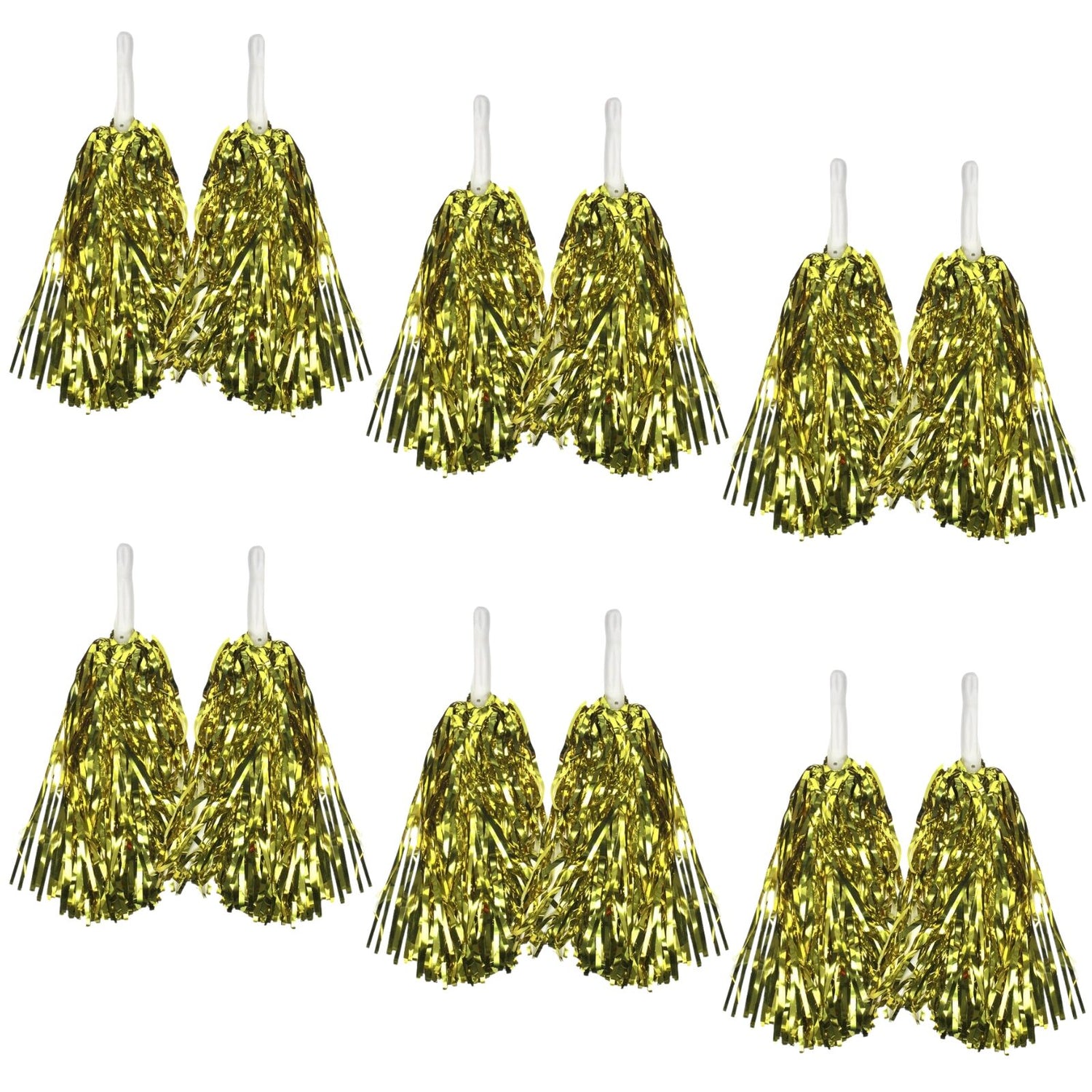 Set of 6 Pairs Yellow Metallic Cheerleading Pom Poms Bulk Pack w/ Easy-Grip Handles (Australia Day/Sports)