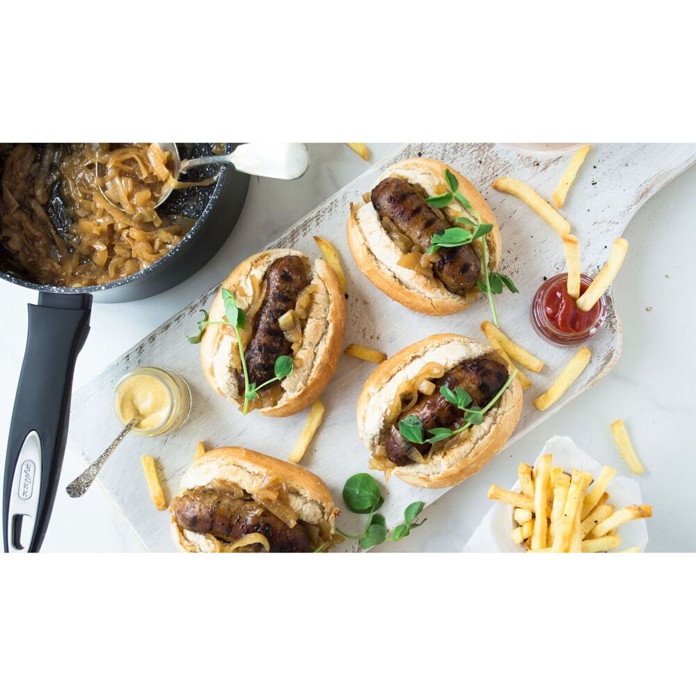 The Cook range is oven and grill-safe up to 180 °C, and the Dot induction base allows for advanced conductivity on most hobs, including induction. The granite-effect surface of the pan is easily cleaned, and the range is fully dishwasher safe.